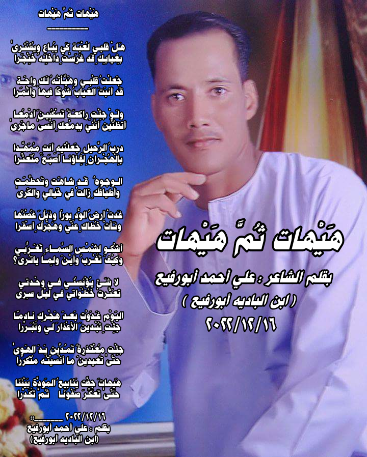 فَنَسِـيْتُ أنَّـــــــي كَشَـاعِـــــرٍ بِالْــوَادي